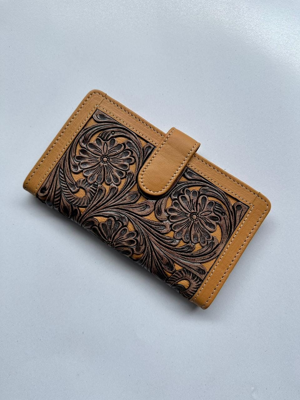 Design Edge Tooling Leather Carved Clutch Wallet – TLW25 Tan