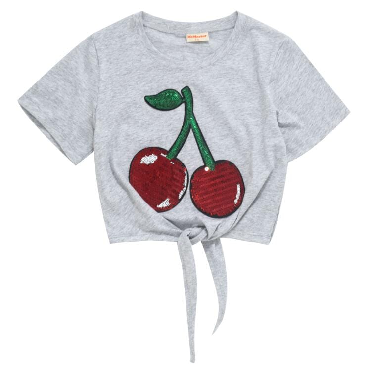 Cop top style tee with cherry design on the front.