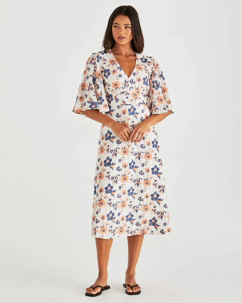With a kimono sleeve and delicate embroidery, the Luca Dress is a relaxed, on-trend favourite. The lined skirt keeps it wearable, and the side pockets are a bonus. It’s an effortless pick for day-to-night dressing.