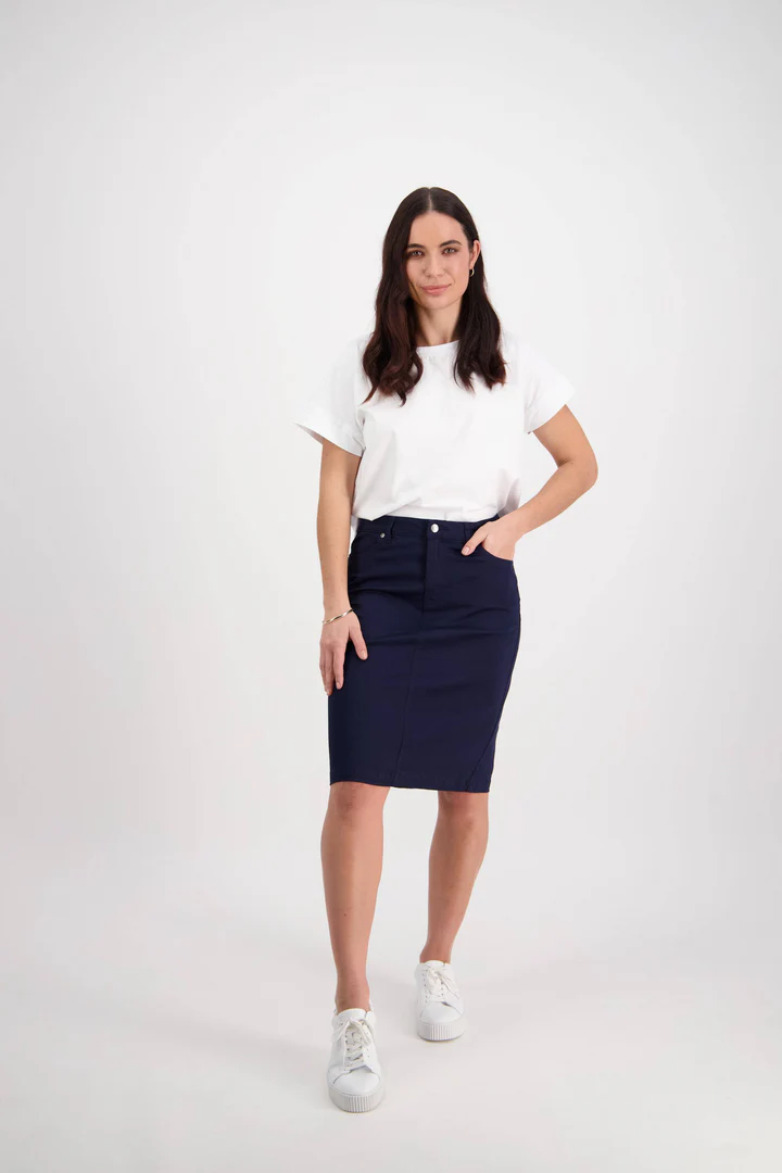 A lightweight skirt made from a comfortable cotton stretch fabric, designed for everyday wear. Complete with a zip fly, front and back pockets, and a back vent for ease of movement. Simple, easy, and versatile.